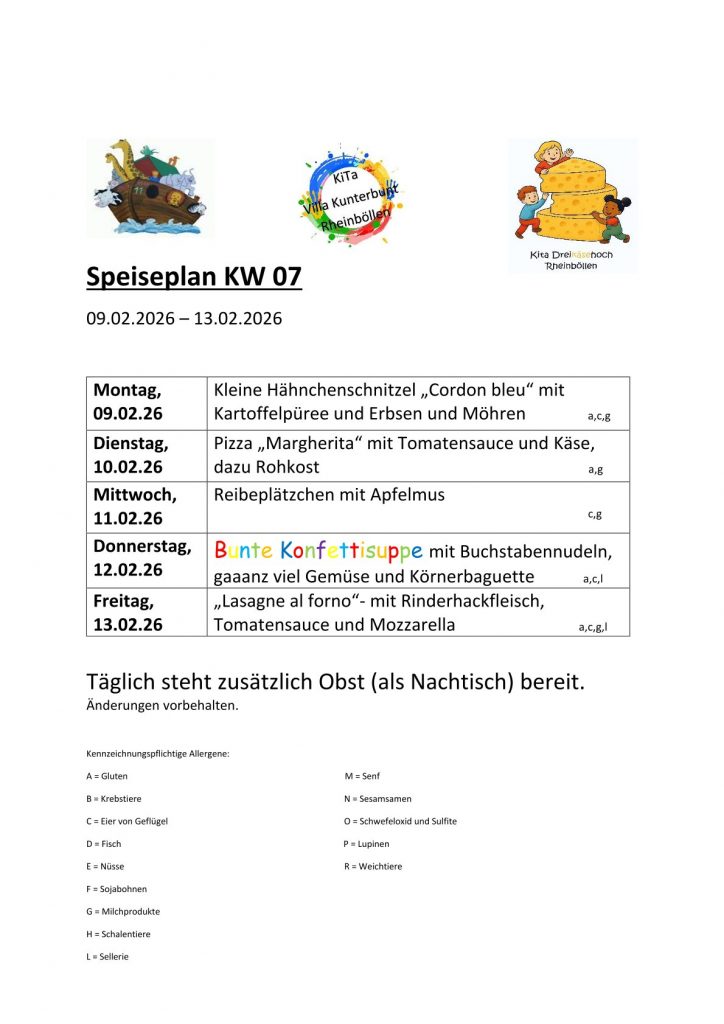 Speiseplan Share on facebook Share on twitter Share on linkedin Speiseplan KW 7 von Fabienne Schüler 9. Februar 2026 PreviousTermine 2025/2026 NextSpeiseplan KW 8 Fabienne Schüler All Comments Speiseplan Speiseplan KW 8 Speiseplan Speiseplan KW 7 Kalender Termine 2025/2026