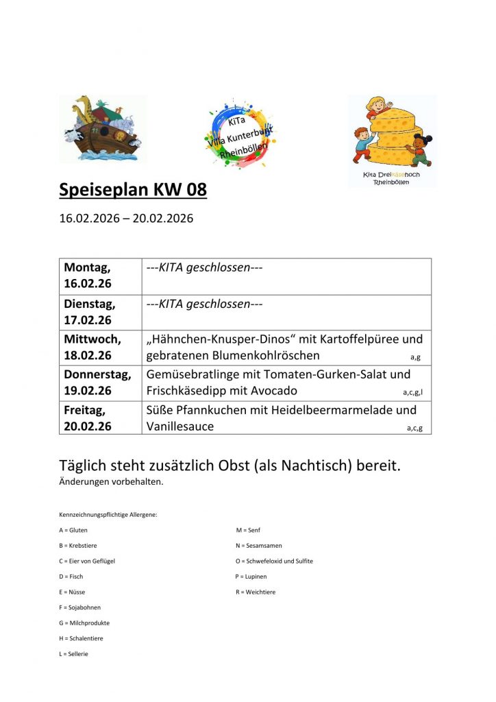 Speiseplan Share on facebook Share on twitter Share on linkedin Speiseplan KW 8 von Fabienne Schüler 9. Februar 2026 PreviousSpeiseplan KW 7 Fabienne Schüler All Comments Speiseplan Speiseplan KW 8 Speiseplan Speiseplan KW 7 Kalender Termine 2025/2026
