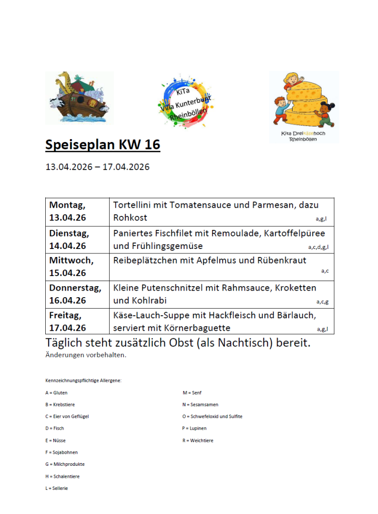 Speiseplan Share on facebook Share on twitter Share on linkedin Speiseplan KW16 von Fabienne Schüler 13. April 2026 PreviousSpeiseplan KW15 Fabienne Schüler All Comments Speiseplan Speiseplan KW16 Speiseplan Speiseplan KW15 Speiseplan Speiseplan KW14